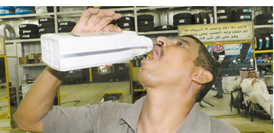 Mekaniku jemenas, i cili jeton në Mekë të Arabisë Saudite, thotë se ai pinë vajra të frenave dhe lubrifikantë, si pjesë e “dietës” së tij që kur ishte 17 vjeç dhe filloi të punonte si mekanik.