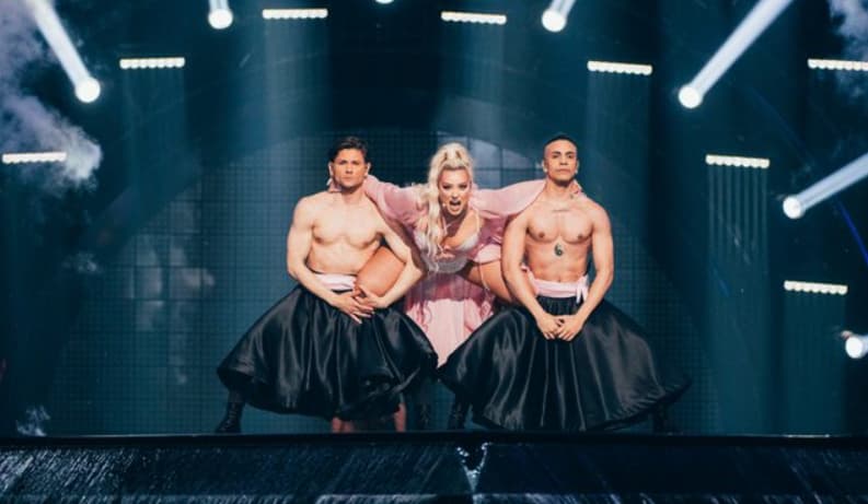 Këngëtarja Ronela Hajati që shkaktoi shumë zhurmë në mediat vedase dhe botërore ku u komentua gjerësisht për performancën dhe veshjen e papërshtatshme.