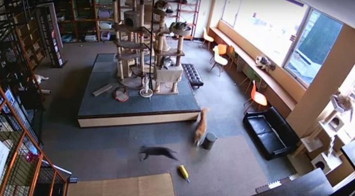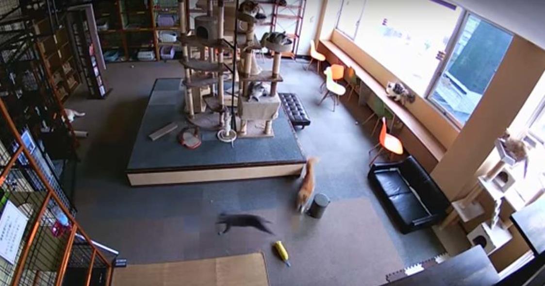 Duke parë këto pamje të kamerës së sigurisë, macet me sa duket kanë një sens që e ndjejnë atë që do ndodhi, përpara se të ndodhi.