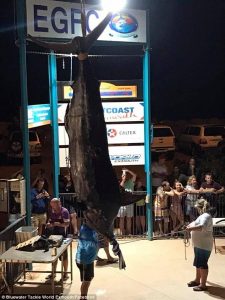 Peshku i madh peshonte rreth 494 kg, duke mposhtur rekordin e mëparshëm prej 452 kg të kapur nga Melanie Kisbee në vitin 1999.
