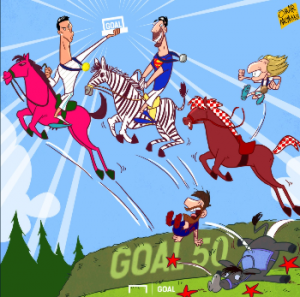 Pikërisht kjo ngjarje është shfrytëzuar edhe për karikaturë të ditës, ku Ronaldo shihet edhe një herë tjetër para argjentinasit, të cilin e mposhti në garë për lojtarin më të mirë në Evropë, në Botë nga FIFA dhe është kandidati kryesor edhe për Topin e Artë, të pestin në karrierë. /Expresss/