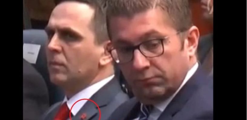 Por, siç mund të shihet edhe në fotografi, Mickoski ka kthyer kokën në anën tjetër kur e ka parë se në “sakon” e Kasamit është i vendosur flamuri kuq e zi.