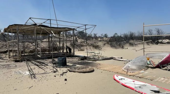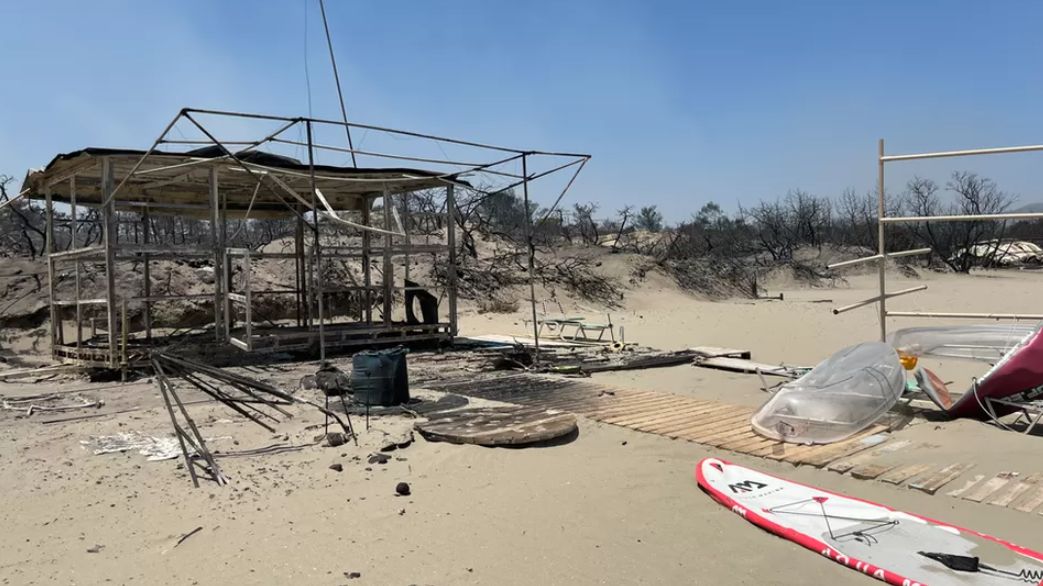Vetëm pak ditë më parë, turistët shijuan rrezet e diellit dhe ujin e pastër blu të Rodosit, ndërsa tani gjithçka që ka mbetur janë mbetjet e djegura të asaj që dukej si kafene dhe “skeleti” i djegur i një biznesi turistik.
