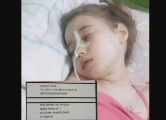 Lina Feta vajza 7 vjeçare nga Komuna e Sarajit, respektivisht nga fshati Gllumovë, e cila ka 2 muaj që ndodhet në gjendje kome në spitalin klinik të Shkupit.