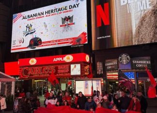Times Square “vishet” Kuq e Zi për festën e Flamurit Kombëtar (VIDEO)