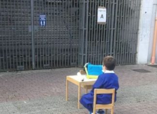 Momenti prekës në Itali: Shkolla e mbyllur, djali i vogël qendron në bankë para...