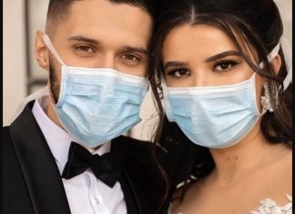Po bëjnë xhiron e rrjetit, çifti shqiptar kurorëzohen në martesë me maska (FOTO)