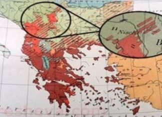Kjo është një hartë gjeografike që është punuar me metodën e ngjyrave. Me çrast, çdo ngjyrë pasqyron zonën ku është folur një gjuhë në territorin e vendeve Ballkanike.