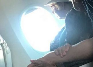 Në fluturimin me aeroplan nga San Diego për në Nashville të Shteteve të Bashkuara, një grua 96-vjeçare që ishte shumë e shqetësuar, është qetësuar prej një të riu, që ia mbante dorën.