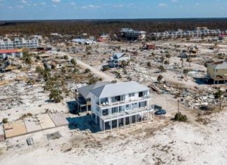 Një hapësirë e madhe e Meksiko Beach, Florida, u shkatërrua nga Uragani Michael – por shtëpia e sapo ndërtuar e një familjeje mbijetoi pothuajse e paprekur.