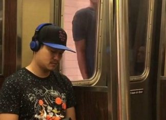 Të pranishmit në një tren që po udhëtonte nëpër New York, nuk mund t’i besonin syve kur një burrë u kap për derë dhe qëndroi ashtu deri në stacionin tjetër.