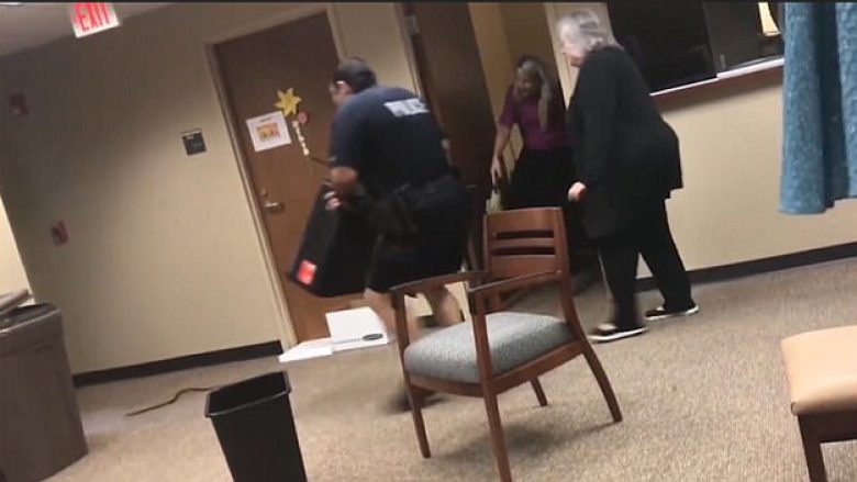 Polici i paemëruar nga Florida e Shteteve të Bashkuara, ka ngritur duart nga gëzimi, pasi arriti ta lokalizoi një gjarpër që kishte hyrë brenda stacionit.