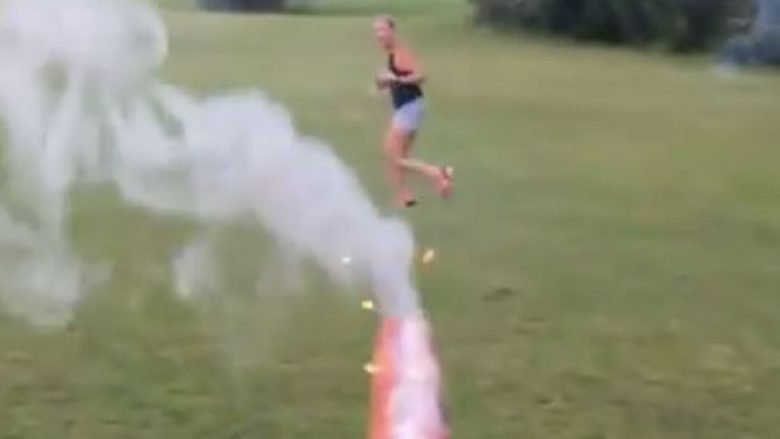 Është hedhur në internet një video e shkurtër, që nuk dihet se ku është realizuar, e cila tregon për një njeri që hedhë fishekzjarrë në drejtim të gruas.