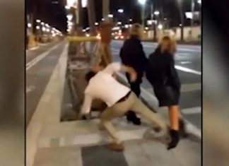 Në video shfaqen momentet tronditëse kur një i ri në Barcelonë të Spanjës filmohet teksa godet me shkelm një grua.