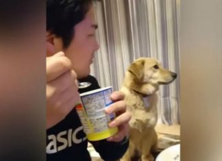 Në video shihet se si i zoti provokon qenin duke ngrënë yogurt, dhe që katërputroshi e dëshiron aq...