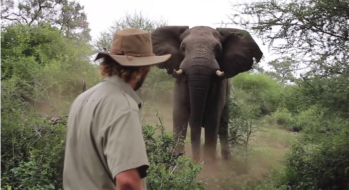 Elefanti vrapon drejt këtij njeriu, shikoni si e ndaloi ai (VIDEO)