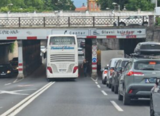 Autobusi i kompanisë kosovare “Flutura Raizen” ka ngecur nën nënkalimin më të famshëm në Zagreb në rrugën Miramarska.