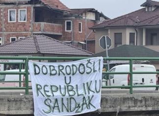 Në hyrje të Novi Pazarit kryeqendrës së Sanxhakut janë parë banderola me mbishkrimin “Mirë se vini në Republikën e Sanxhakut”.