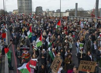 Dhjetëra mijëra demonstrues vërshuan rrugët e Londrës të shtunën për të kërkuar një armëpushim të menjëhershëm në Rripin e Gazës dhe për të shprehur solidaritet me palestinezët, raporton Anadolu.