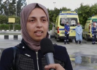 Duke folur me gazetarët në vendkalimin Rafah, Lobna al-Saik,...