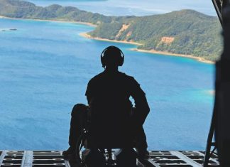 Fytyrat e tyre të lyera me të gjelbër dhe të zezë, disa me raketa Stinger në shpinë, ushtarëte “Darkside” – batalionit të 3-të të regjimentit të 4-të detar të Amerikës – hipën në helikopterë...