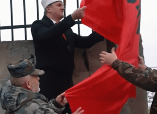 Në një xhami të Prishtinës himni lëshohet në vend të ezanit, hoxha puth flamurin...