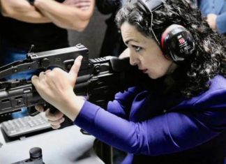Presidentja e Kosovës, Vjosa Osmani vizitoi sot kompaninë për prodhimin e armëve në Karlovac të Kroacisë, HS Product. Fill pas vizitës, Osmani publikoi një fotografi ku shihet me armë në dorë.
