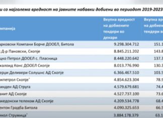 Vetëm 10 kompani në pesë vitet e fundit kanë fituar tenderët shtetërorë në vlerë prej një miliard eurosh. Hulumtimi i Qendrës për Komunikime Civile tregon se në 5 vitet e fundit në vend janë...