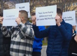 Kandidati për president nga radhët e BDI-së, Bujar Osmani sot gjatë vizitës në Universitetin e Tetovës, është pritur me protesta nga studentë dhe aktivistë të rinisë së opozitës shqiptare VLEN.