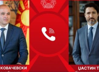 Kryeministri Dimitar Kovaçevski gjatë ditës së sotme realizoi bisedë telefonike me kryeministrin e Kanadasë, Justin Trudeau. Në bisedë ishte e pranishme dhe ministrja e Mbrojtjes, Sllavjnka Petrovska.