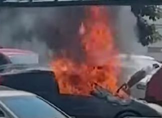 Një veturë është kapluar nga zjarri para pak çastesh tek sheshi Skenderbeu në Shkup, afër parkingut ku sipas informacioneve jozyrtare të Klan M nga temperatura ka marrë flakë.