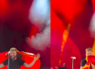 Ricky Martin elektrizon sheshin, mbulohet me flamurin kuqezi dhe e puth, përshëndet me shqiponjën...