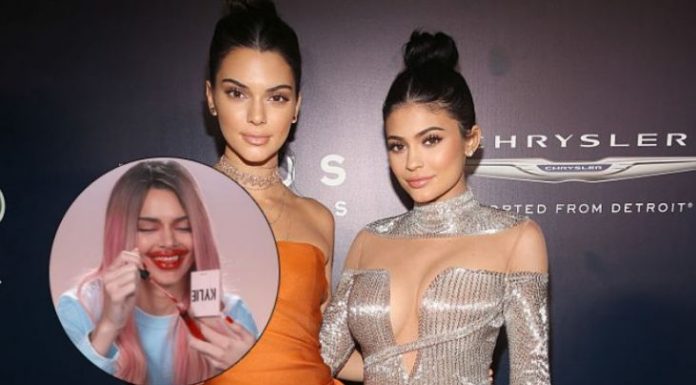 Kendall është paraqitur me paruke ngjyrë rozë duke e imituar motrën e saj dhe njëherësh i lyen buzët duke i paraqitur të zmadhuara ashtu siç i ka Kylie.