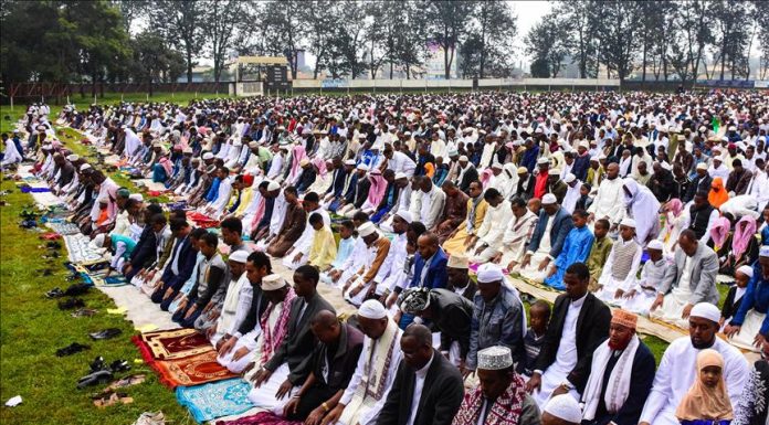 Rreth 20 mijë persona në mesin e të cilëve edhe gra dhe fëmijë në kryeqytetin e Kenias, Nairobi, falën namazin e Bajramit në fushën e futbollit, raporton Anadolu Agency (AA).
