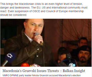 Diplomati i njohur evropian Erwan Fouere ka reaguar ashpër pas fjalimit të djeshëm të liderit të VMRO-DPMNE-së Nikolla Gruevski dhe ka kërkuar përjashtimin e Maqedonisë nga OSBE-ja dhe Këshilli i Evropës.