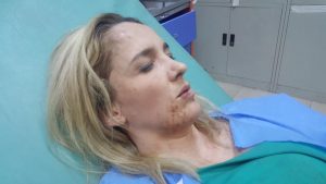 Menjëherë pas sulmit, ajo është dërguar për trajtim mjekësor në spital, prej ku Express ka siguruar foto të Xharrës deirsa po merrte ndihmën mjekësore.