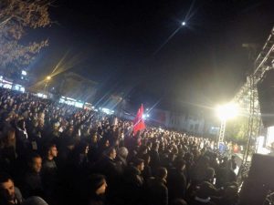 “Rilindje me BESË”, po mban tubimin e saj në Qendrën Tregtare të Çairit. Ajo që mund të vërehet është numri i madh i qytetarëve të cilët kanë dalë dhe po i japin përkrahje koalicionit “Rilindje me BESË”.