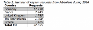 Sipas statistikave europiane, të paktën 32 mijë shqiptarë kanë kërkuar azil vitin e kaluar në vendet e Bashkimit Europian. Nga këta, 7.445 shqiptarë aplikuan për azil në Francë.