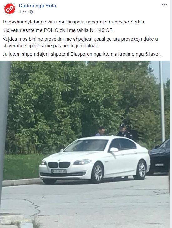 Një faqe në Facebook ka postuar fotografinë një veture me targa të Nishit, ku sipas tyre drejtohet nga policë civil serbë.