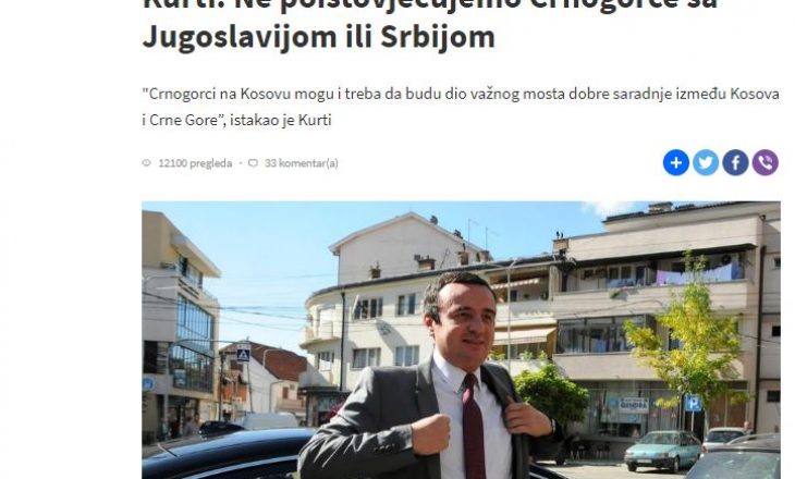 Gazeta e përditshme malazeze, Vijesti, citoi një deklaratë të Albin Kurtit dhënë Televizionit Publik të Kosovës, në të cilën ai thoshte se dëshiron të ketë marrëdhënie të mira me Republikën e Malit të Zi dhe se qytetarët e këtij shteti nuk “i identifikon me Jugosllavinë, e as me Serbinë”.