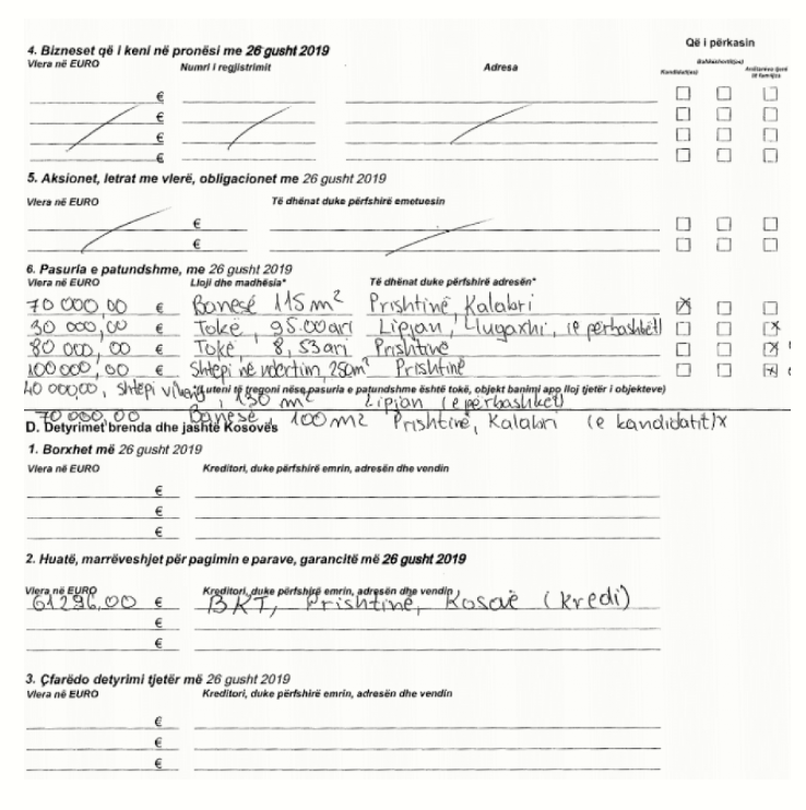 Sipas këtij formulari të plotësuar nga Konjufca më 26 gusht, njeriu i dytë më i votuar i Lëvizjes Vetëvendosje në zgjedhjet e 6 tetorit, posedon dy banesa me mbi 100 metra katror në lagjen Kalabria në Prishtinë.