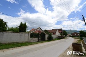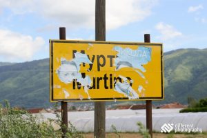 Në hyrjen e fshatit shihet tabela e cila është e mbuluar nga afishet e Nikolla Gruevskit.