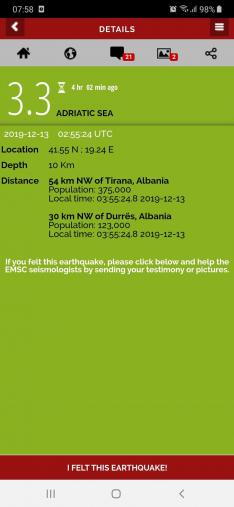 Por edhe mëngjesin e sotëm ka pasur një tërmet në të njëjtën orë dhe minutë, 3:55 por me magnitudë 3.3 të shkallës richter.