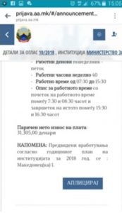 Pas publikimit të konkursit për pranimin e dy nëpunësve shtetërorë në Ministrinë e Kulturës menumër 10/2018 (http://prijava.aa.mk/#/announcementDetails/118 – 10/2018) për pranimin e një ndihmës-udhëheqësi në sektorin e veprimtarisë botuese dhe një ndihmës-udhëheqësi në sektorin për mbrojtjen e trashëgimisë kulturore, mes tjerash theksohet, se nëpunësi duhet të jetë “maqedonas/e”. Lidhur me këtë skandal, ka reaguar Lëvizja Besa.