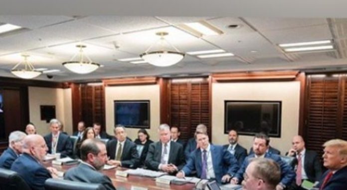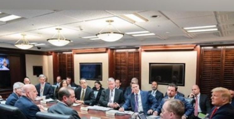 Në transmetim direkt: punonjës të CIA-s dhe CDC (Qendra për Kontrollin dhe Parandalimin e Sëmundjeve). Vetë Trump postoi pamje nga video-transmetimi, ku duken ekspertët e inteligjencës.