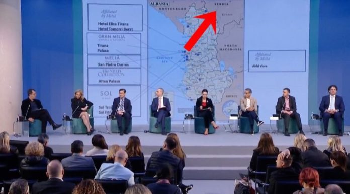 Në njërin prej paneleve të kësaj konvente në hartën pas panelistëve Kosova shfaqet si pjesë e Serbisë, ndërsa në territorin e Republikës së Kosovës shkruhet “Serbia”.