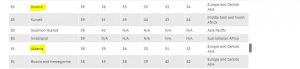 Në 2016, Kosova kishte një rënditje, ka qenë në vend të 95.