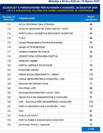 Lista e detajuar e subjekteve politike dhe numri i kandidatëve të certifikuar do të publikohet nga KQZ-ja në faqen e saj zyrtare.