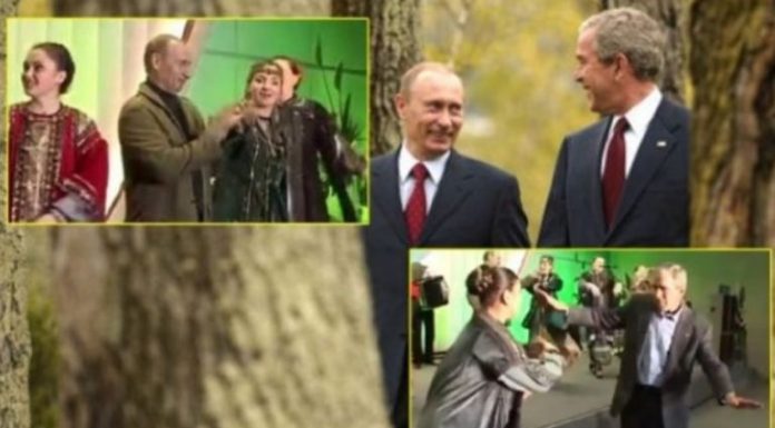 Sipas mediave ruse, përcjell Telegrafi, bëhet fjalë për një arkiv të pamjeve, të regjistruara në mes 2005-2009, njëra prej të cilave tregon presidentin rus Vladimir Putin dhe presidentin e atëhershëm të SHBA-së George W. Bush së bashku, duke vallëzuar një valle tradicionale ruse ‘Sudarynia – Barynia’, me një ansambël popullor.