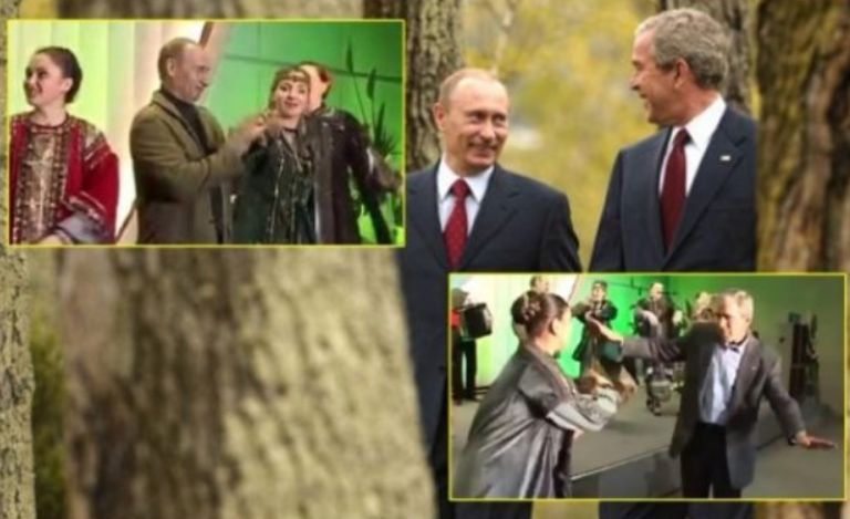 Siç edhe mund të shihet, Putin është regjistruar derisa vallëzonte në një skenë ndërsa Bush vallëzon veçmas pranë presidentit rus, në çift me një pjesëmarrëse femër nga trupa e veshur me një kostum popullor.